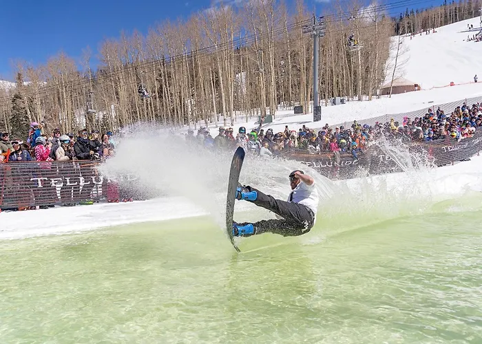 In dieser Villa wohnen Sie in einer Entfernung von ungefähr 10 Autominuten von der Cornet Creek Falls und ein paar Schritte entfernt vom Mountain Village Core. Die Villa Mountain Village Panoramic Views, Hot Tub, Fireplace Townhouse befindet sich in 3,1 Kilometer Entfernung von kulturellen Sehenswürdigkeiten wie dem Telluride Historical Museum. Sheridan Opera House befindet sich 15 Fahrminuten von dieser Unterkunft in Telluride entfernt.
